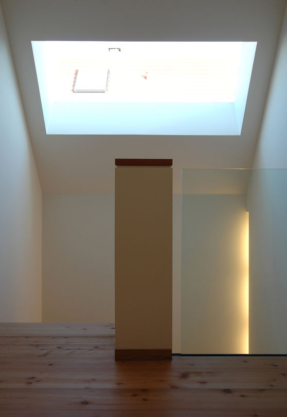 dies ermöglichte bei geringem bau-volumen den überdachten übergangs-bereich und weiteren stauraum im dachgeschoss.